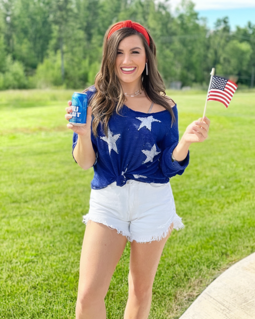 Pair this outfit with white sneakers or strappy sandals to keep it light and summery. Perfect for Memorial Day 2025 backyard parties and fireworks displays!