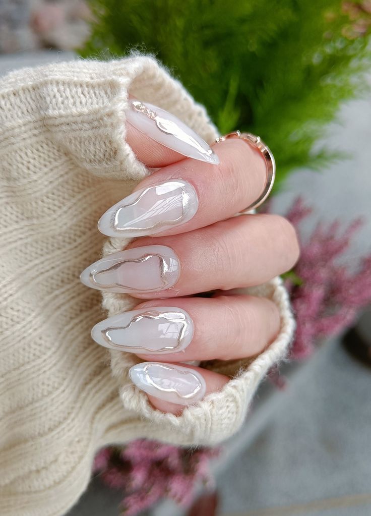 This look pairs beautifully with neutral outfits, such as beige trench coats or tailored blazers, and layered gold jewelry. Whether you’re headed to the office or a weekend brunch, this nail style will add subtle glamor to your ensemble.