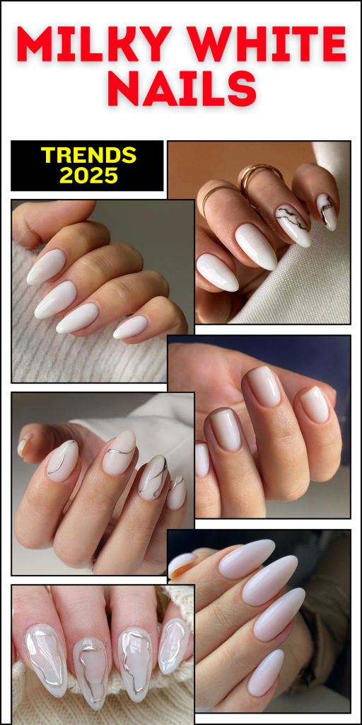 Milky white nails are taking the beauty world by storm in 2025, proving that subtlety can make a bold statement. Known for their soft, creamy hues and versatility, these nails fit seamlessly into any fashion-forward woman’s lifestyle. Whether you’re drawn to short square shapes, almond elegance, or the sparkle of glitter and rhinestones, milky white nails have something for everyone. In this article, we’ll explore the most stunning trends and ideas for milky white nails, inspired by the looks shown below.