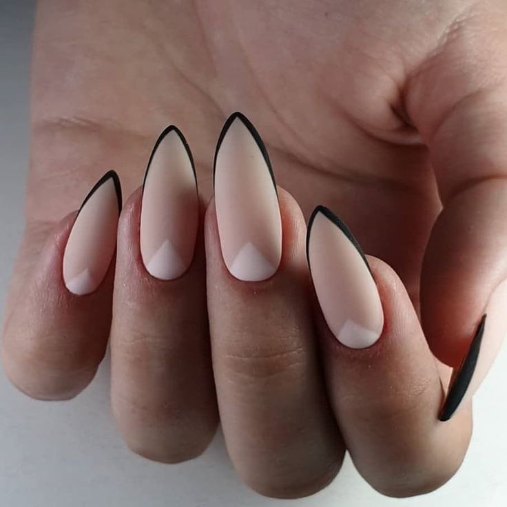 For a bolder minimalist approach, these almond-shaped nails feature sleek black chevron tips on a soft nude base. The sharp angles of the design create a dynamic yet understated effect, making it a standout choice for fall 2025 events or edgy formal wear.