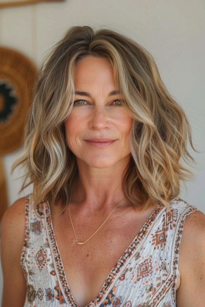 Beachy blonde waves are a timeless and effortless look for moms who love a relaxed yet polished style. Perfect for casual outings or beach trips, this hairstyle exudes natural beauty and versatility.