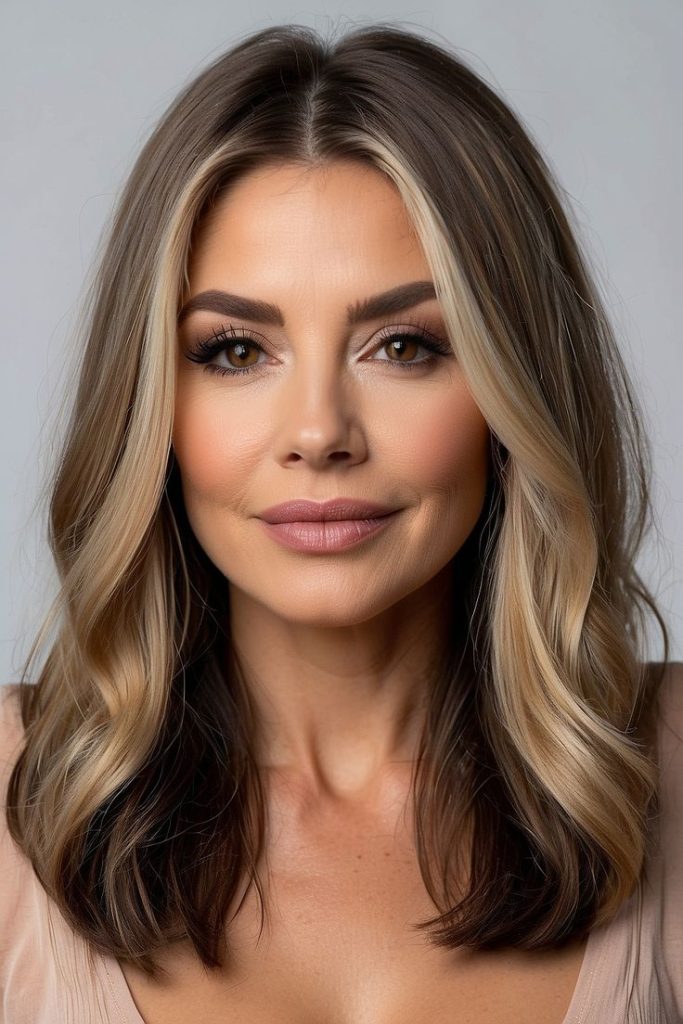 These sleek medium-length waves strike the perfect balance between casual and chic. A great choice for work or a dinner party, this hairstyle works especially well with layered cuts and long hair. It’s an excellent option for moms seeking easy styling that elevates their everyday look.