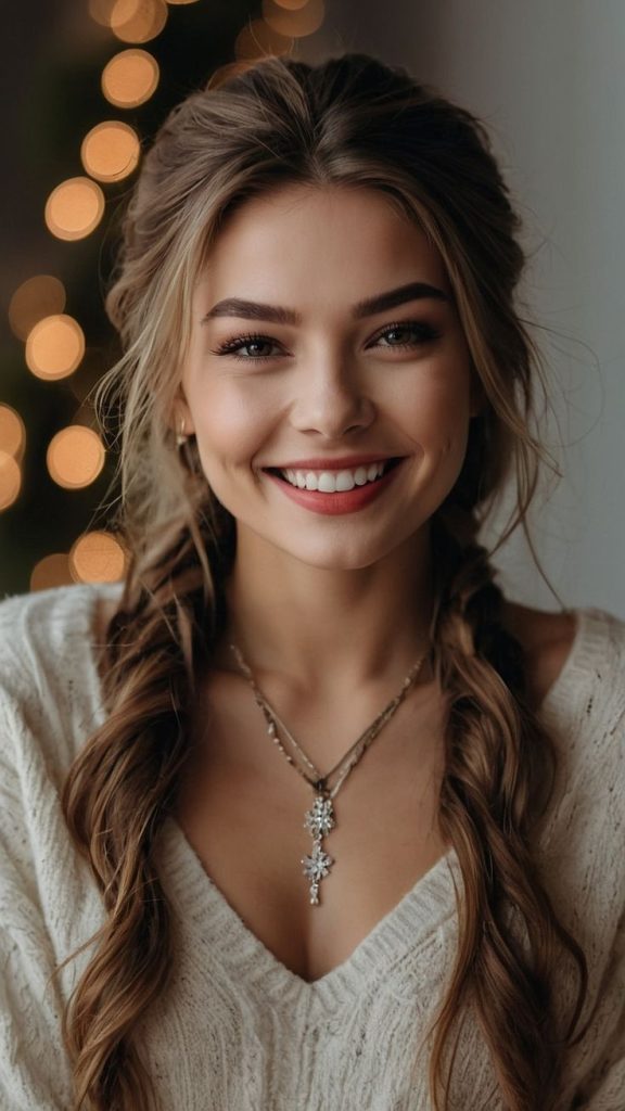 Twin braids with loose strands bring a youthful, carefree vibe to any occasion, from casual outings to holiday parties. This hairstyle works exceptionally well for moms with long hair, as it highlights its length and texture.