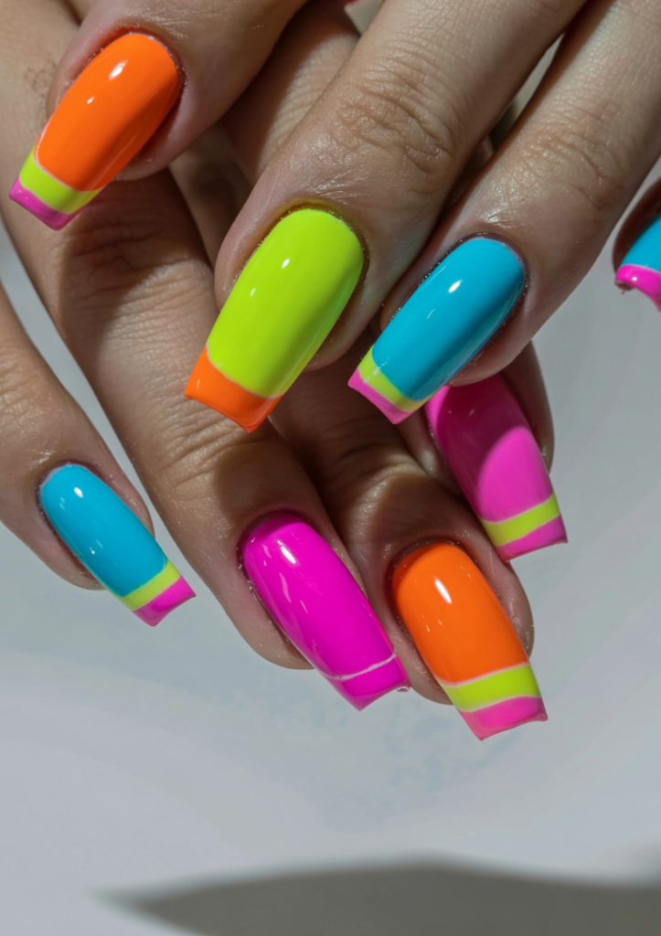 2. Neon Colorblock French Tips