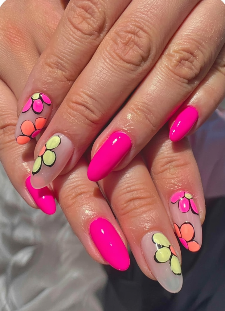 5. Neon flowers on hot pink