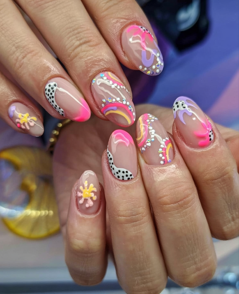 This mani is reminiscent of summer picnics, daisy chain crowns and gelato on a warm afternoon. Anyone interested in eye-catching design will acquire this colorful nail style because it combines boldness with elegance.