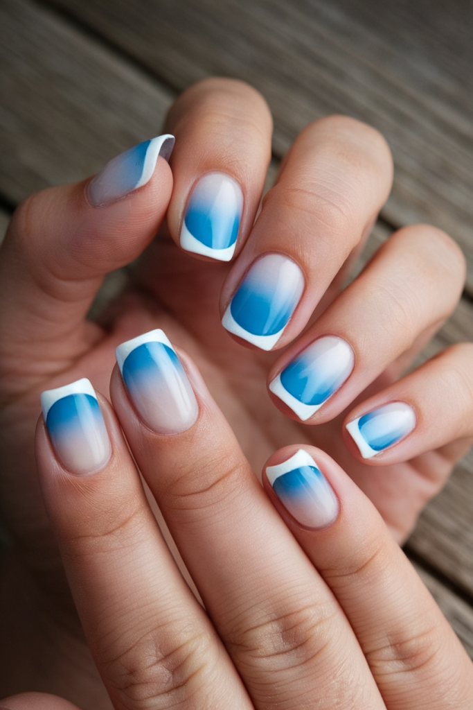 This design puts a beachy spin on the classic French tip by blending shades of blue into a seamless sea beach waves ombré fade. The result is ultra aesthetic, giving the illusion of movement like waves meeting the shore. Great for those who favor simple, timeless elegance with a nod to oceanic beauty.