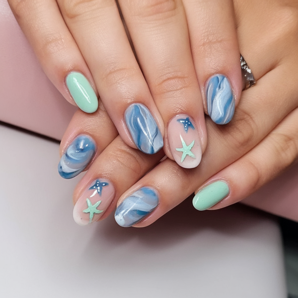 Let’s explore the most stunning sea and beach-inspired nail ideas for 2025, one look at a time.