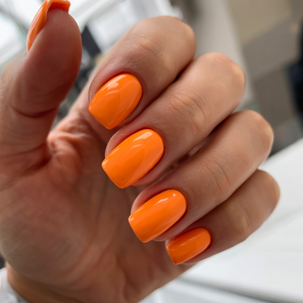 For those who want to combine enduring style with modern elements, this compact square manicure is for you. For a flawless, no-fuss chic look, apply tangerine polish with impeccable shine. No art, no distractions-just pure color payoff. Natural nails serve as the perfect platform for a minimalist seasonal glow that demonstrates the power of small details.