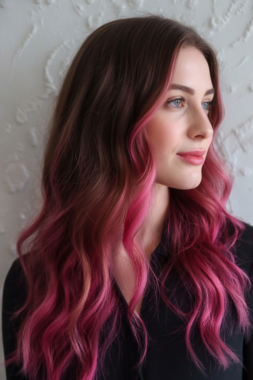 15. Bold Magenta Ombre and Face-Framing Highlights