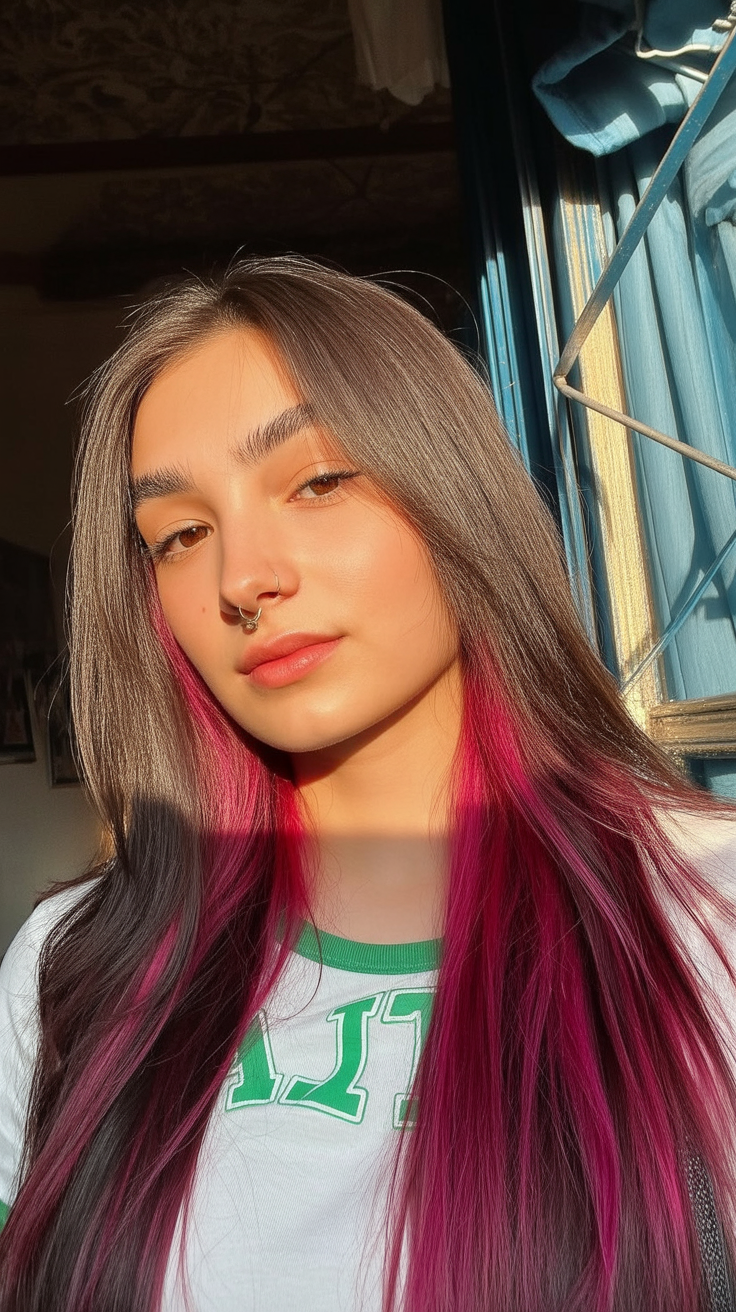 This is ideal for medium to long hair, as the colors will stand out beautifully in layers or waves. The blend of colors on the ends creates an effortless yet highly personalized look. If you love to experiment with colors and want something that’s bold but not permanent, this peekaboo style will bring excitement to your hair without too much upkeep. Plus, using a color-depositing conditioner will help you keep those vibrant tones fresh for longer.