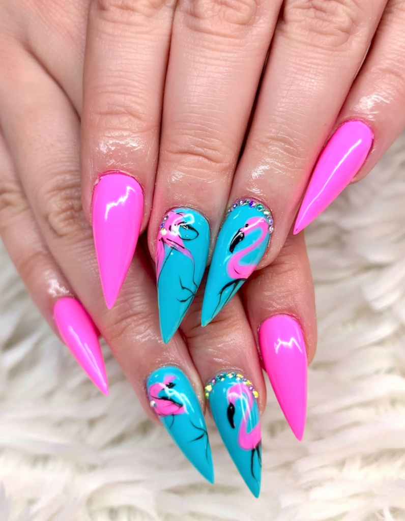 Pink nails have emerged as an enduring fashion statement for the central period of summer 2025 because they represent a combination of aesthetic choice and emotional expression. Each design showcases pink in edgy neon hues, elegant floral patterns, playful flamingos and vibrant glitter styles to suit every style preference for every summer occasion in 2025. Each nail style best suits the individual between a neat square edge, a bold almond cut or a truly natural look. Find your favorite nail looks by bookmarking and then experimenting with gel or acrylic nail products to make your hands this season’s must-have fashion statement.