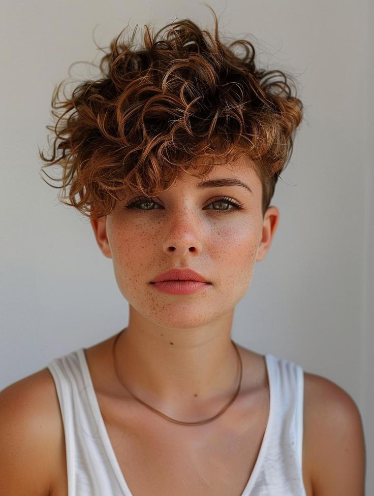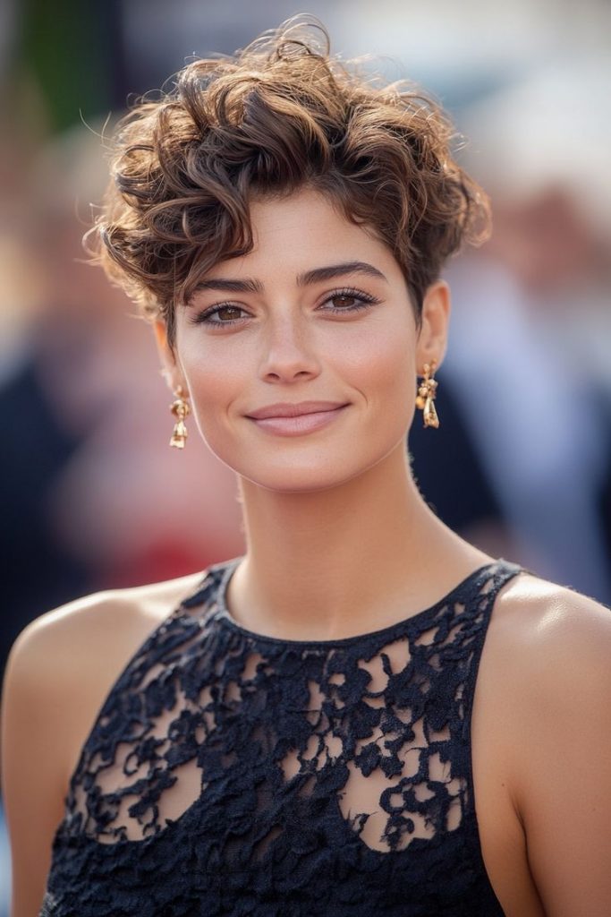 For those with a long face, this tousled pixie adds volume at the top while maintaining a sleek silhouette. The dynamic curls are perfect for creating a youthful, carefree vibe, making it a standout choice for 2025.