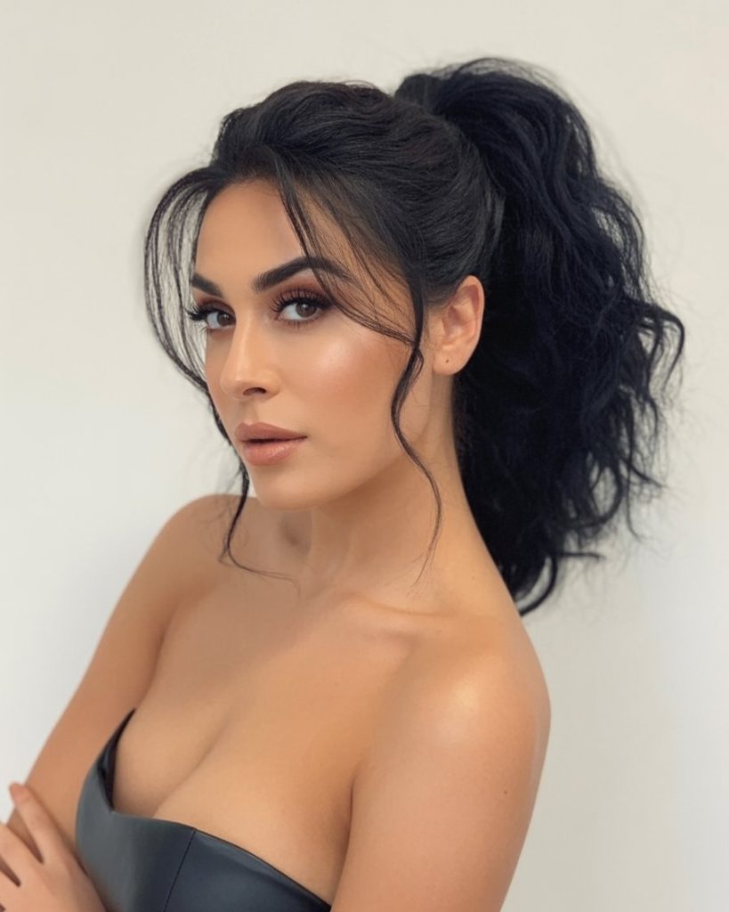 Airy, undone, and a little sultry—this mid-height pony lets wispy tendrils fall along the cheeks while the tail keeps a touch of messy texture. It’s effortlessly pretty, the kind of look that makes a leather top feel softer and a blazer feel less serious. The gentle face pieces flatter and add movement with every turn of the head. Styling tips or care instructions: Curl random sections, then rake through with fingers for that simple lived-in finish. Pinch a tiny side part for softness. If your hair is fine, dust the crown with texturizing powder before gathering. A light, flexible spray keeps the flyaways charming rather than frizzy. It’s easy for date nights, for school events, or anytime you want to be polished without overthinking.