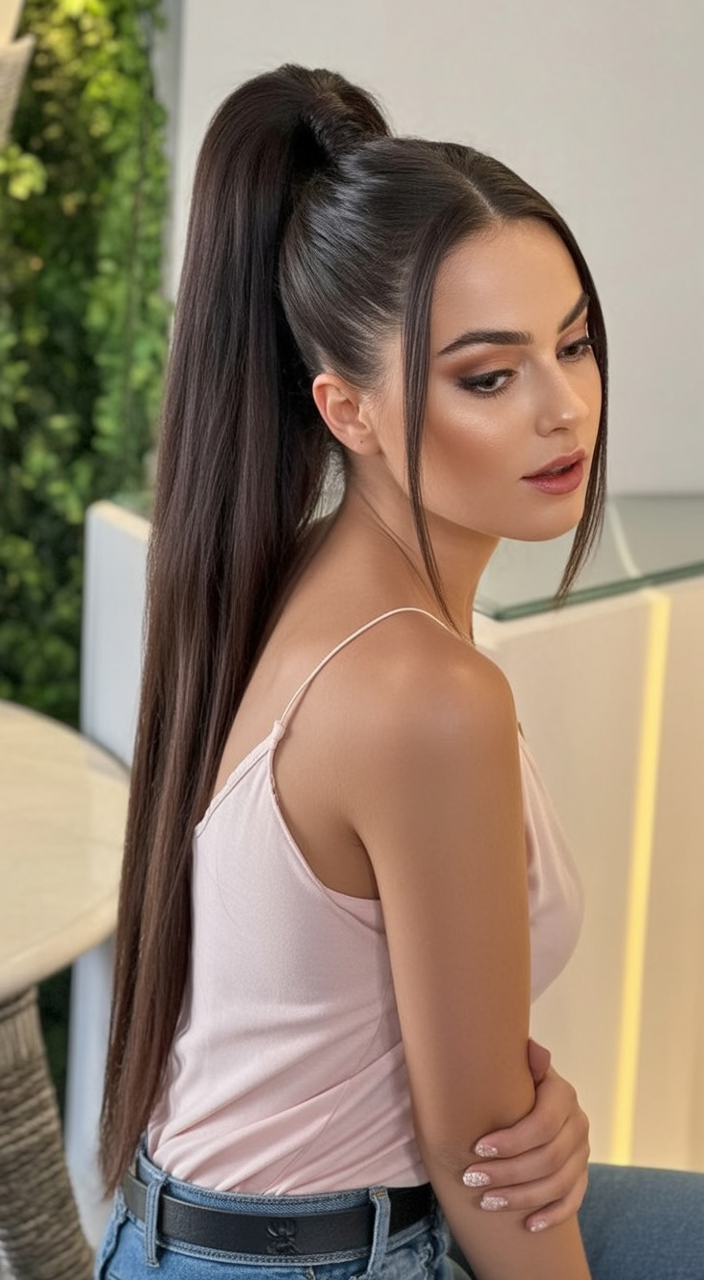 3. Super-Long Sleek High Pony with Face Framing