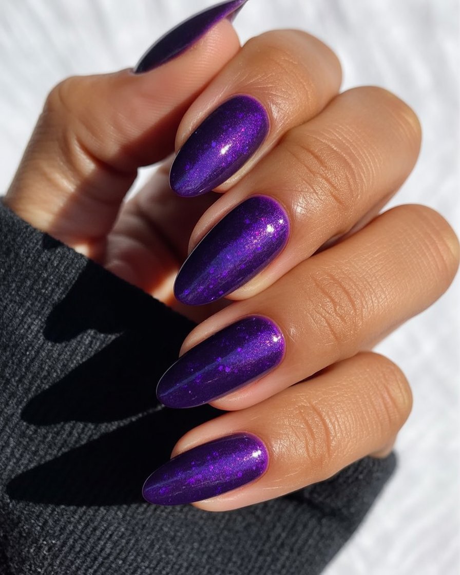 There is something so alluring about deep purple nails that glisten down to the finer detail of crushed velvet. Those almond-shaped beauties spell mystery and glamour with an energy that should be confide in the late-night cocktail prospect-an energy never prone to being overdone. Bold, elegant, and unapologetically stylish-it is exactly the kind of look that turns your hands into statement-making accessories all of a sudden.