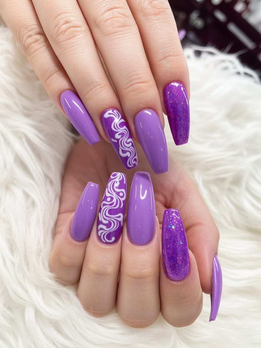 This set is for women who crave options: solid purple on some nails, art swirling on others, shimmer to connect it all. The whole mix-and-match thing is playful and modern; it’s perfect for when you want your manicure to scream you don’t hide in the shadows of the crowd.