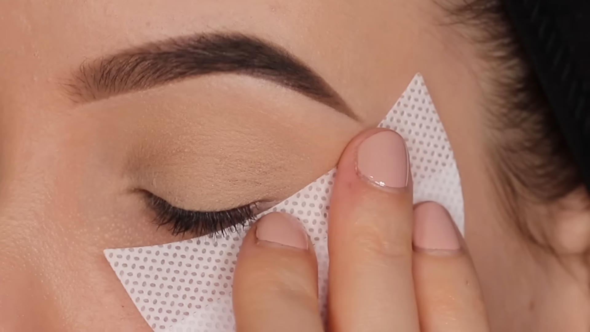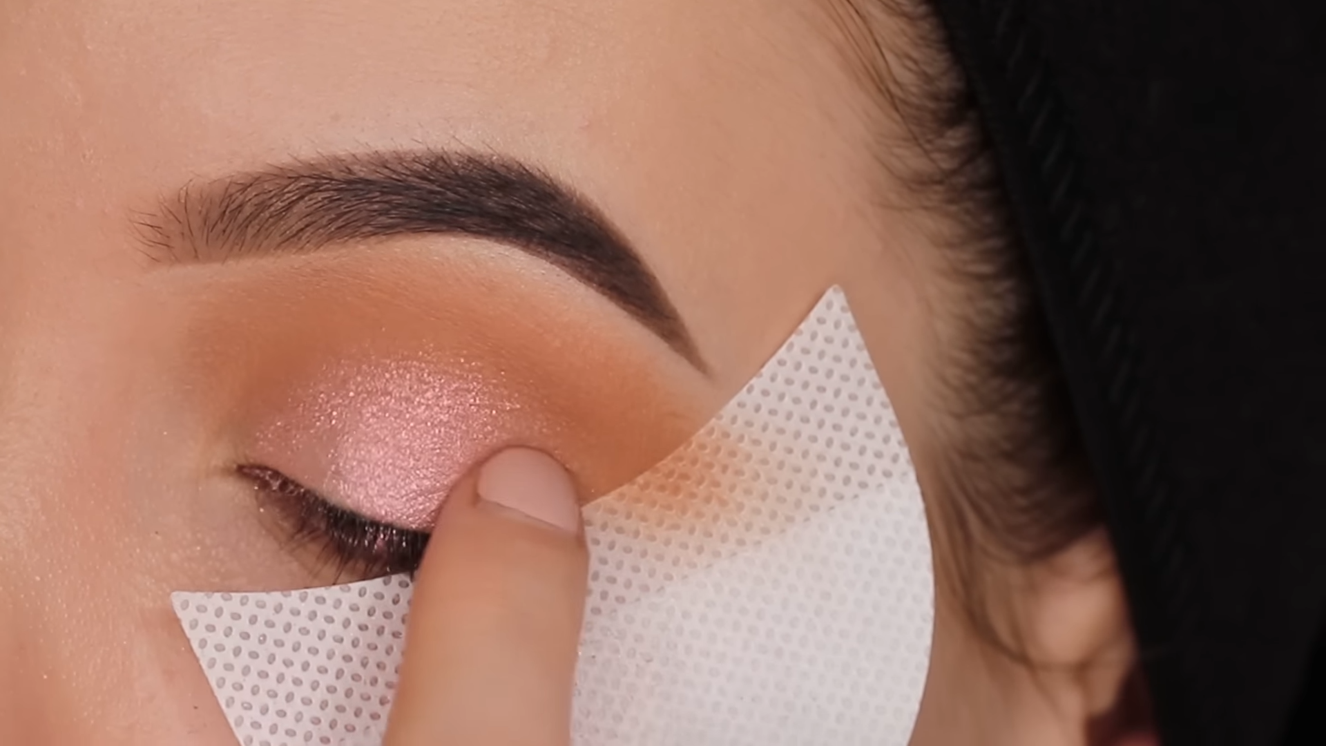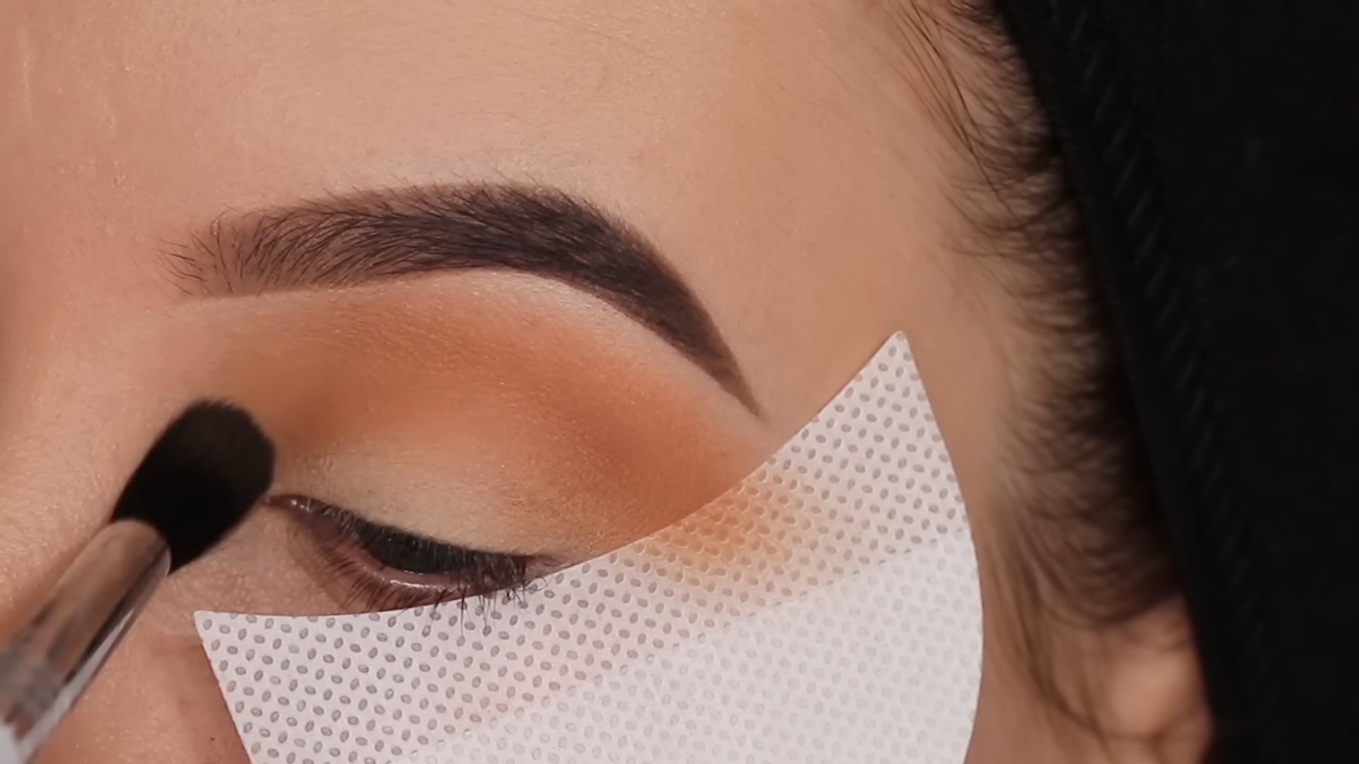 Before diving into the eyeshadow, position eyeshadow guards along your lower lash line, extending towards the end of your eyebrow. These guards, available on the creator’s website, are crucial for catching fallout and aiding in the precision of your winged liner, ensuring a flawless finish.