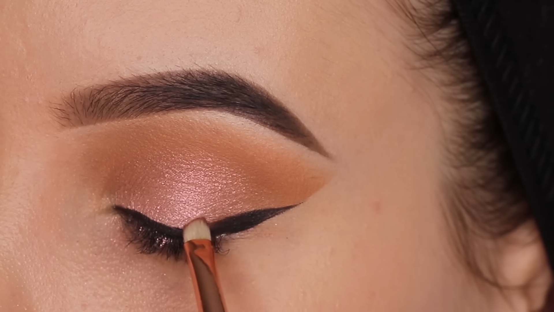 Next, enhance the eyelids by applying a soft pink color. The trick here is to use your fingers for application, as the warmth of your fingertips helps to increase the color payoff, giving you a more vibrant and pigmented appearance.