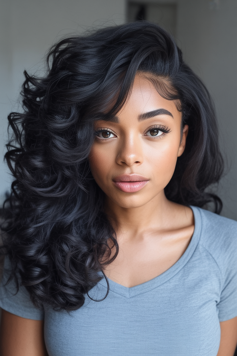 If you love volume but not a lot of styling time, this is a go-to option for Black women who want something polished for weddings, birthdays, or just everyday glow. A little mousse scrunched into the ends helps define the waves while keeping things silky, not crunchy.