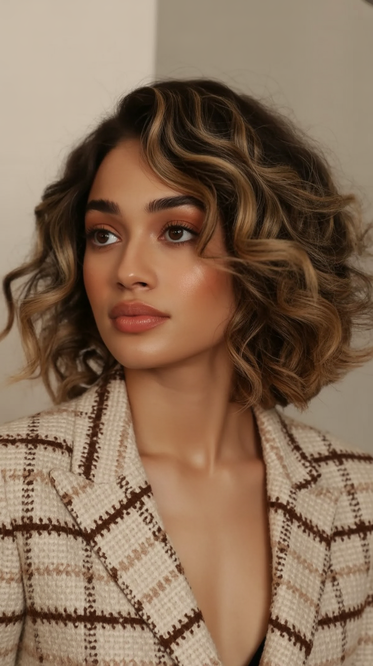 13. Curly Bob Quick Weave with Lived-In Highlights