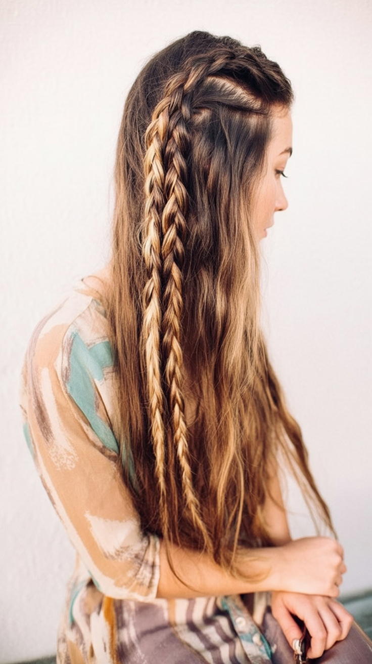 The quick weave and gentle braiding along the part line create a lovely texture, and then it softly waves and glows at the honeyed ends. It is polished and playful and different from the classic waves without going in for a festival look. This style is beautiful for both office and weekends, and it photographs fabulously. Comparison. If you love half up, half down but want something sleeker, this braided accent gives similar interest with less styling time. Straight hair textures with a gentle bend hold the braid cleanly, while a closure keeps the part crisp. Swap the braid for a thin ribbon or metallic thread when you’re in a birthday mood; leave it plain when you want understated chic.