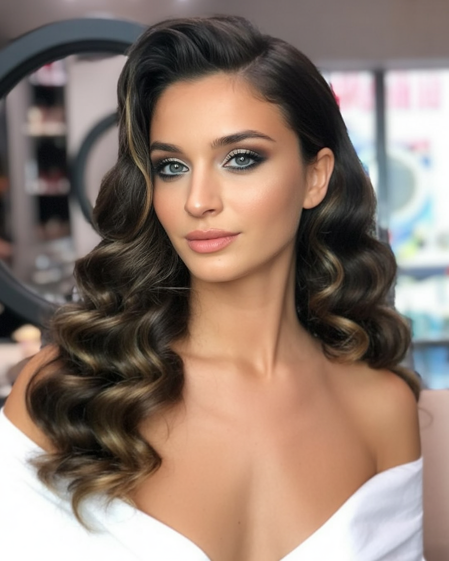 Feel like a screen siren with these sculpted S-curls that slide like satin down the shoulders. The dramatic side part gives instant asymmetry and a touch of mystery, and the glossy finish captures the light. It’s a timeless style—romantic, camera-ready, and feminine. The hair adds a polished look even without feeling overdone, whether you’re wearing a sleek dress or a wide-collar top. Styling tips. Set body wave bundles in clip curls or flexi rods, cool completely, then brush out to form uniform ripples. Anchor with a side part closure or flip-over method if you like a softer hairline. Mist with a flexible spray rather than a hard hold so the movement stays touchable. For an evening update, tuck one side behind the ear and add studs—perfect for birthdays, summer events, or any night you want to glow.