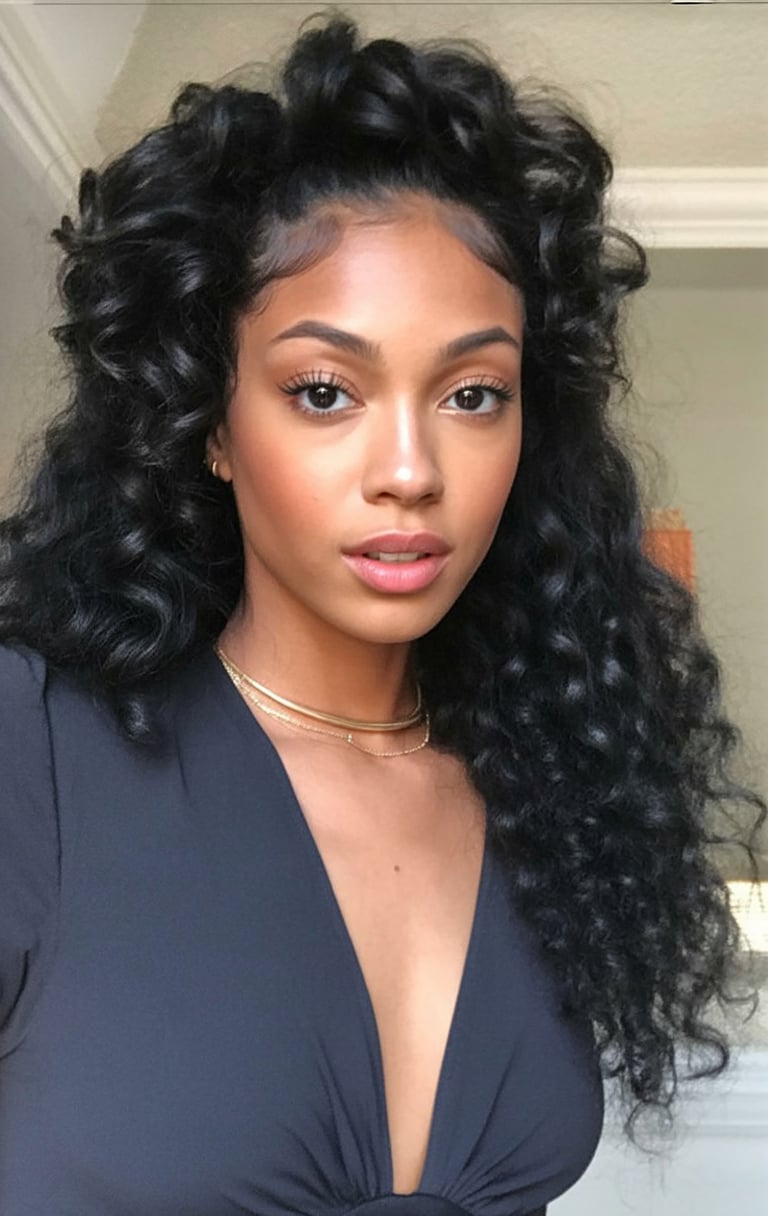 This look shines at special events—think anniversary dinners, fancy nights out, and even birthday glam moments. It works wonderfully with curly and deep wave textures, giving you height without teasing or heat. Add big hoops and a bold lip for a full vibe.