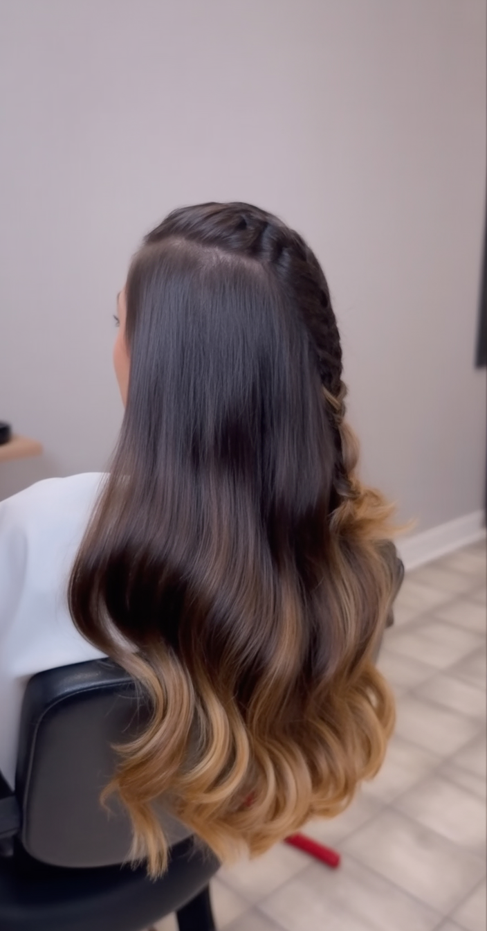 Talk about glam—this half-up ponytail gives sleek perfection on top and cascading curls below. It’s a look that says, “I take my beauty seriously,” but still gives off effortless confidence. The shine, the lift, the length—everything is working.