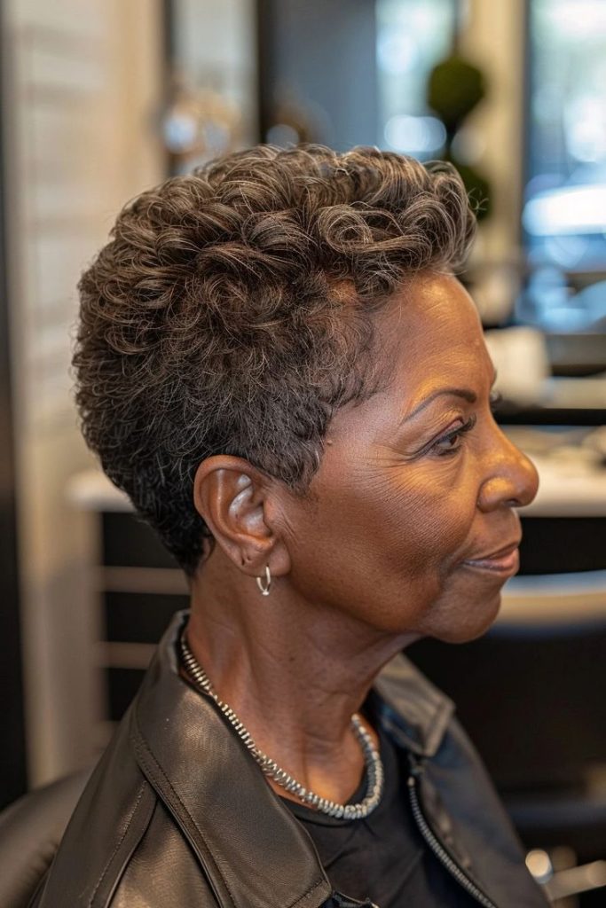 For women with curly hair, a close-cropped style brings out the natural beauty of your curls while offering ultimate manageability. This cut is perfect for showcasing your confident personality and works especially well for women with thick wavy hair or tighter curl patterns.