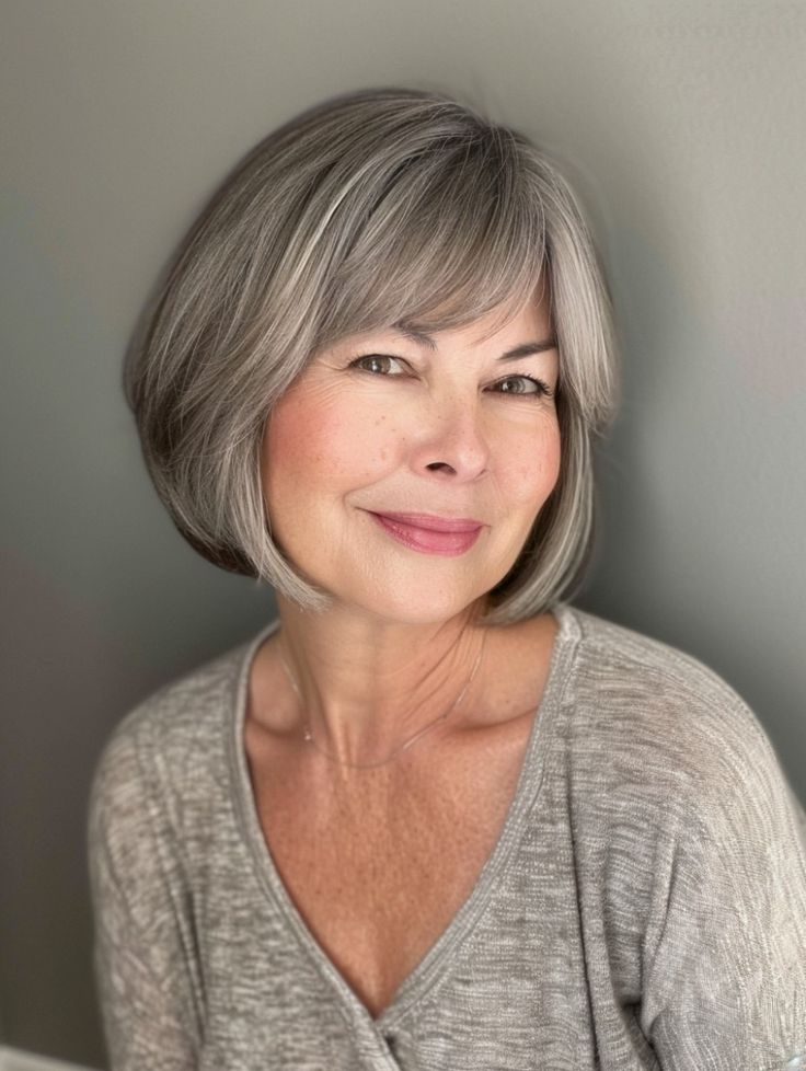 Soft Gray Bob with Side-Swept Bangs