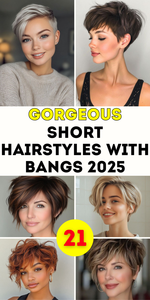Short hairstyles with bangs are set to dominate 2025 with their versatility, charm, and ease of styling. From chic pixie cuts to tousled bobs, there’s a look for every face shape, hair texture, and occasion. Whether you prefer a sleek, sophisticated style or a bold, playful look, these ideas will inspire your next hair transformation. Let us know your favorite style in the comments below and share your own short hair journey with our community!