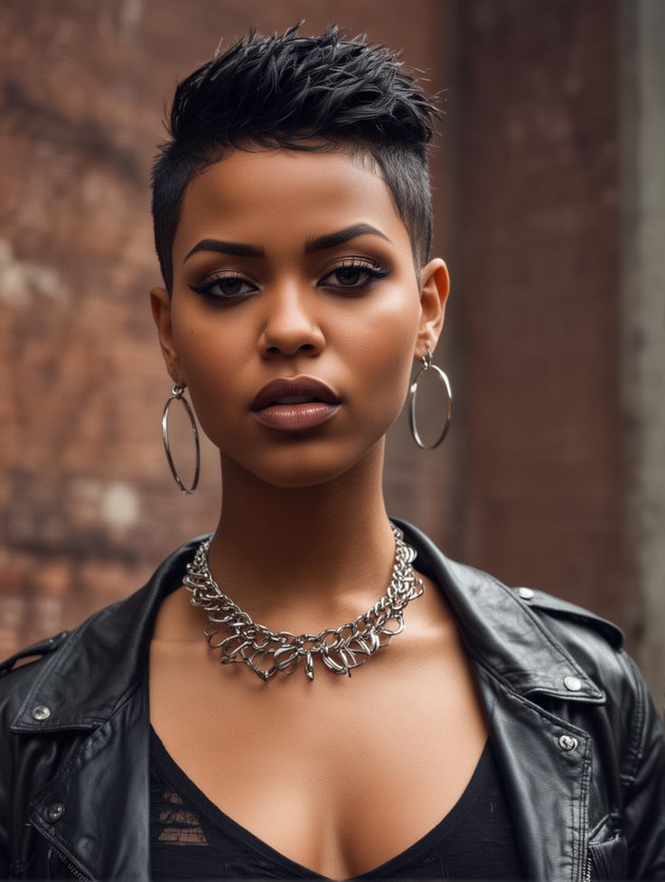 This edgy, closely cropped hairstyle is the epitome of boldness. Designed for black women, it features shaved sides and a textured top that enhances natural curls. The clean lines bring attention to facial features, making it a flattering choice for women over 50 embracing their natural beauty.