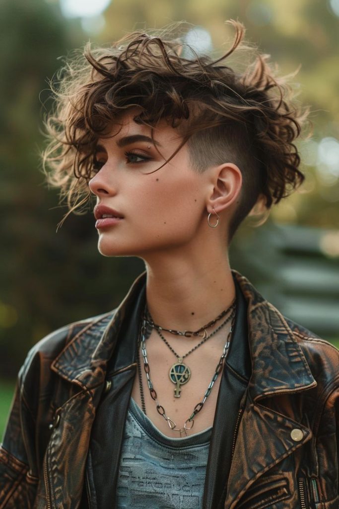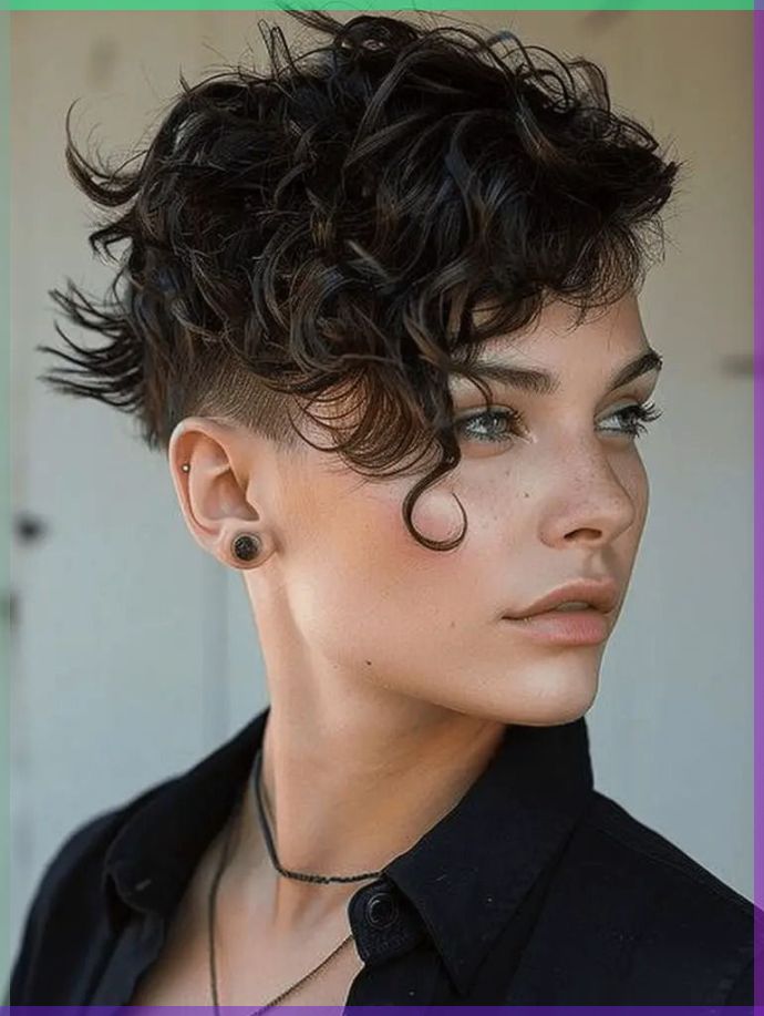 If you’re seeking a bold and daring look, this edgy undercut paired with voluminous curls is for you. Perfect for women who want to stand out, the shaved sides highlight the very naturally curly crown, making it a head-turning choice. This haircut works particularly well with oval or angular face shapes, adding balance and drama. The juxtaposition of the edgy undercut with soft waves makes this style a true inspo for adventurous women.