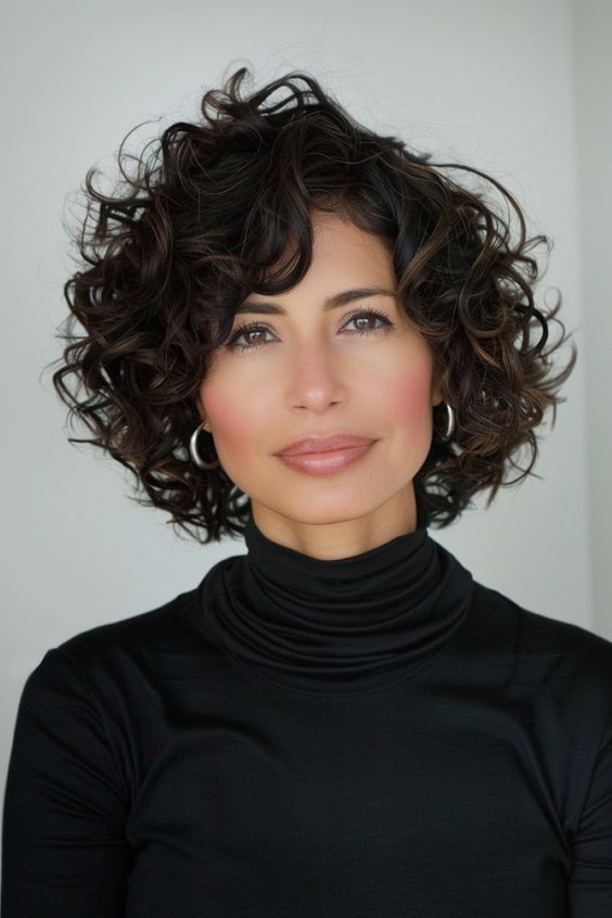 This romantic style features rich chocolate curls enhanced by subtle layers. The warm tones bring out the natural beauty of the curls, making it perfect for hairstyles for round faces. The layers add structure, ensuring the style remains lightweight and bouncy.