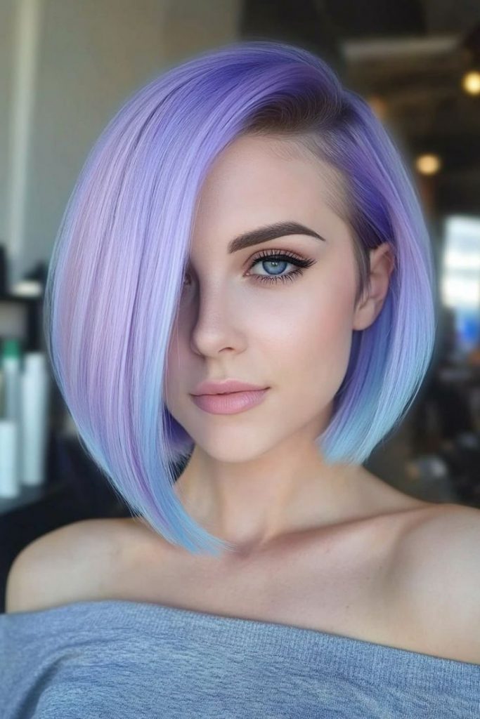 This icy lilac bob offers a beautiful, cool-toned approach to split dye. With soft lavender blending into light blue, the style has an almost ethereal quality. It’s a stunning choice for those with short hair who want something subtle yet impactful. The color combination feels modern and fresh, suitable for those who love aesthetic styles that feel calm and graceful. It’s a perfect option for adding a bit of color without overwhelming the senses.