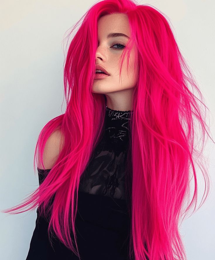 For those drawn to intense, monochromatic colors, this full hot pink hairstyle is both fierce and fashionable. While not technically split-dyed, it carries the same spirit of vibrant self-expression. This bold color is perfect for long, straight hair, allowing the pink to take center stage. Pair this look with minimalistic outfits to let your hair do the talking. It’s a fabulous style for anyone who loves pink and wants a hair color that screams confidence.