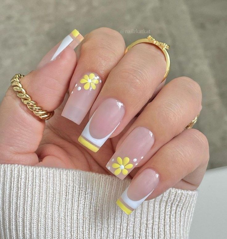 Pair this nail design with a soft yellow sundress or a white blouse and denim combo for a polished spring outfit. This style suits shorter nail lengths and square shapes for a clean, modern look.