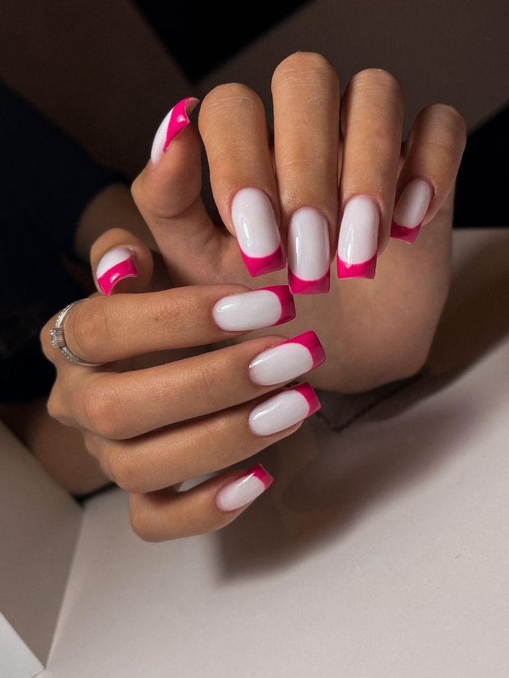 For those who love a bold look, this pink French tip design is the ultimate statement. The vibrant coffin nail shape showcases the bright pink tips, offering a fresh take on the classic style. This design exudes confidence and is ideal for women who enjoy standing out while keeping their nails chic and polished.