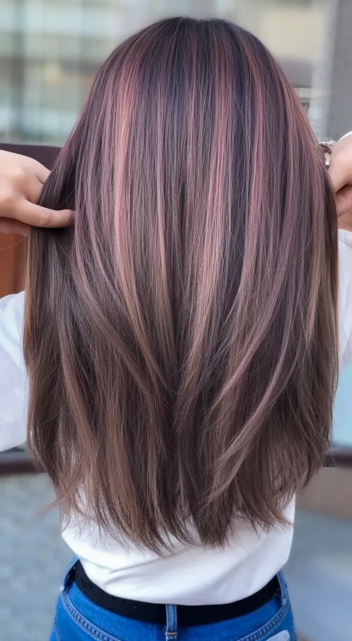 17. Dusky Rose Highlights on Dark Hair
