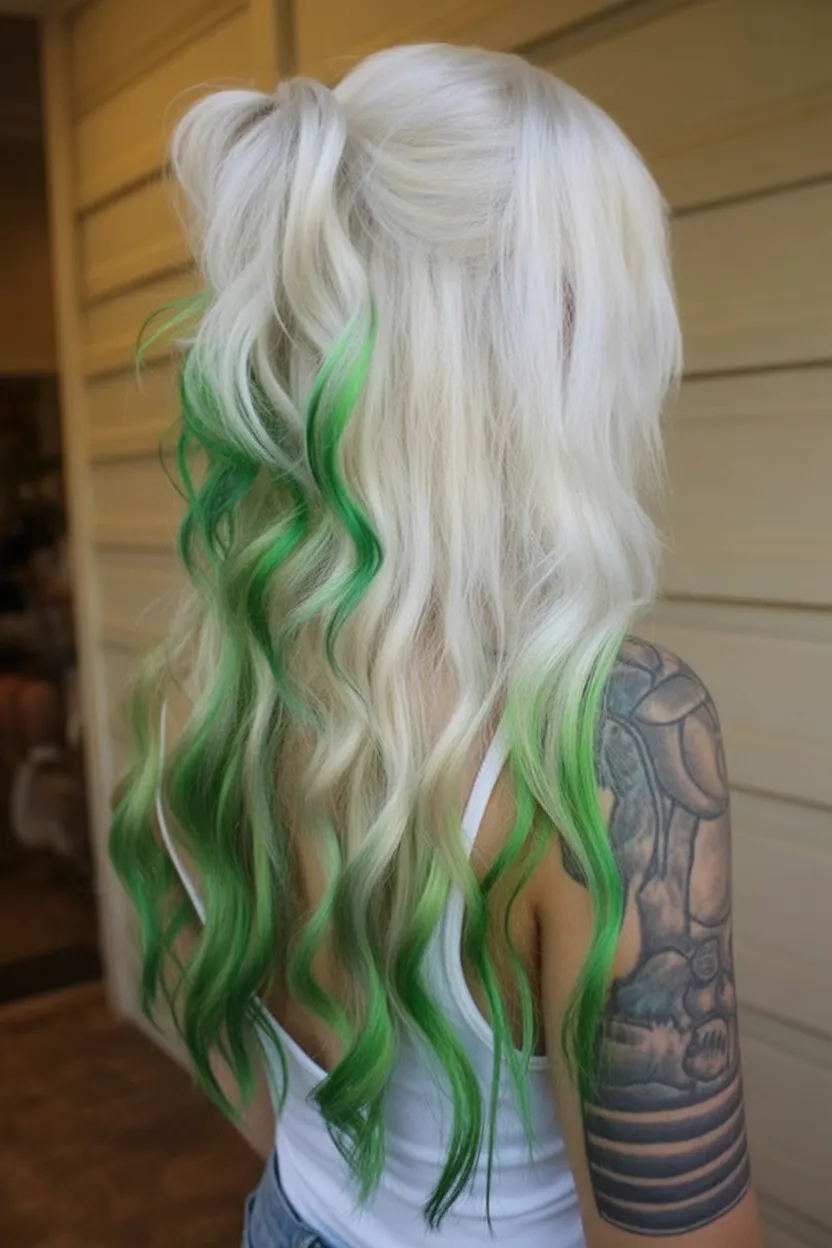 8. Platinum Blonde with Green Accent Ends