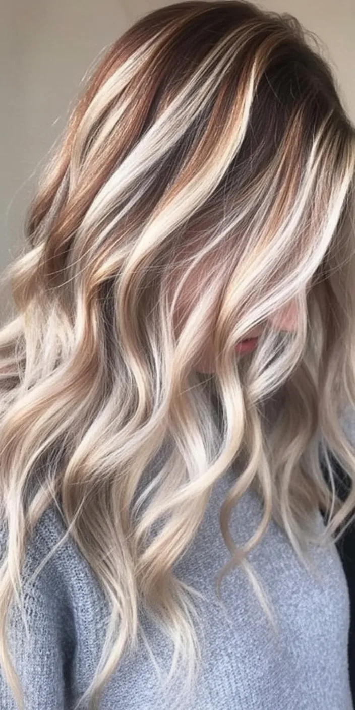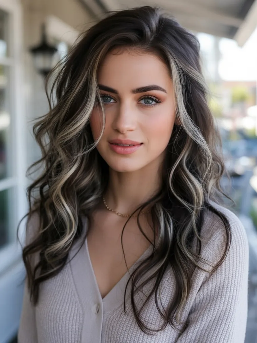 This look is all about contrast and confidence. The bold blonde highlights weave through a brunette base, creating a dramatic, sunlit effect that feels bold yet wearable. It’s the kind of color that instantly elevates simple waves into something eye-catching.