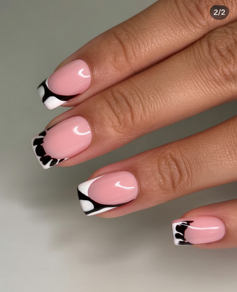 When a classic French tip goes nocturnal, you get this sleek black edge balanced by blush bases and playful leopard art. The contrast is modern and a bit flirty, marrying salon polish with a wink of wild. It’s the kind of manicure that elevates a blazer-and-jeans moment and still works for date night. If you want a touch of drama without going full color, consider this your chic gateway.