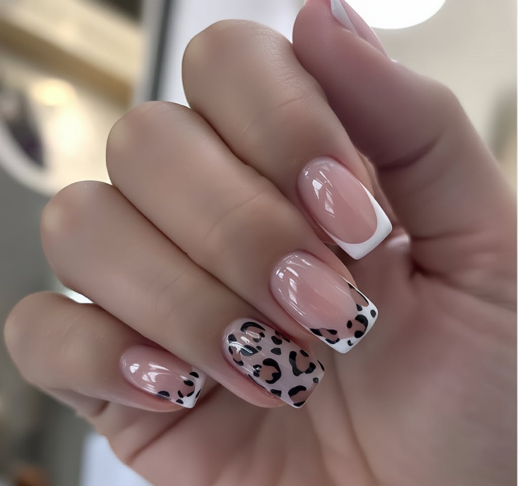 11. White French with Leopard Accents