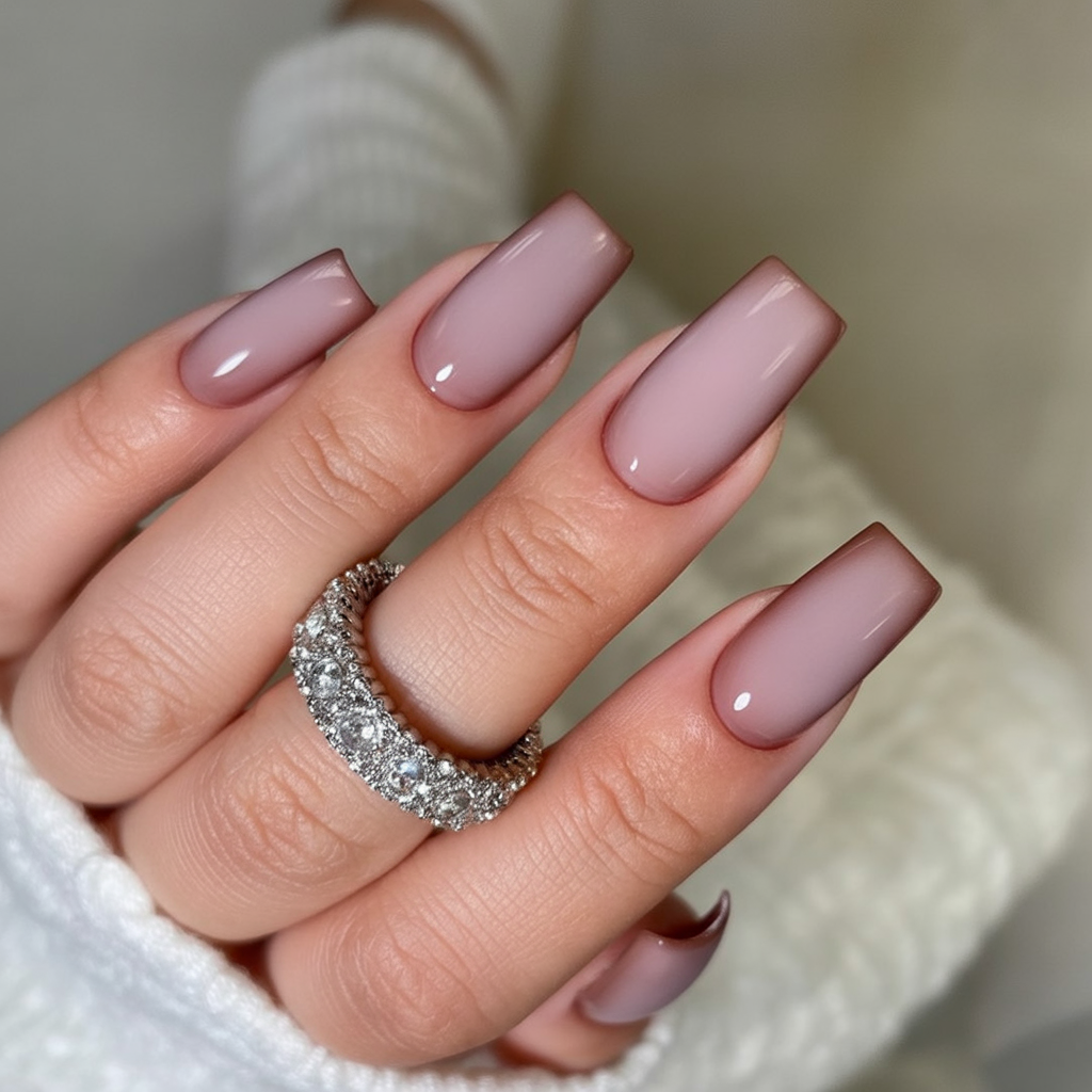 Consider this the cashmere sweater of nails: Soft, sleek, and quietly luxurious. A blush-to-taupe fade melts across the nail, letting the squared-off tips add gentle structure. It’s an easy neutral that pairs with everything—pearls, denim, even a red lip—without stealing the spotlight. For anyone collecting inspiration for an elegant everyday mani, this is the classic idea that never feels dated, even as trends swirl.