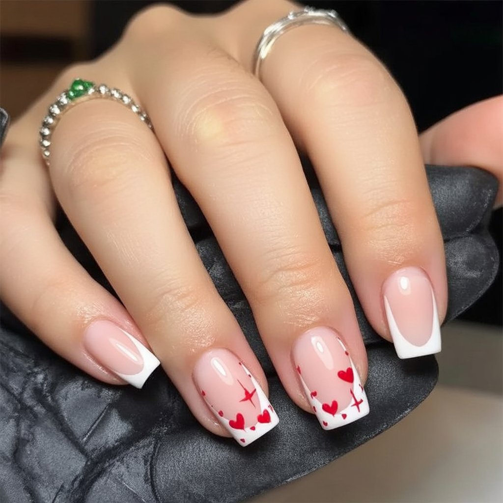 Because this design is so minimalist, it’s incredibly versatile for different lifestyles. It’s office-friendly, mom-friendly, and still romantic enough for date night. Ask your tech for very fine tips so the hearts and shapes stay the focus, and keep your nails short or medium if you want that practical feel. This set is a nice option if you love hearts and French tips but don’t want anything too loud or complicated to maintain.