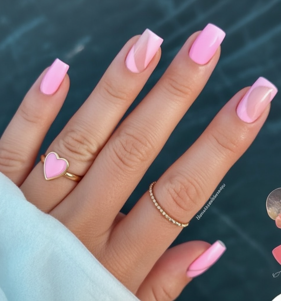 This manicure is ideal for those who like a simple nail that won’t compete with their wardrobe. The neutral pink is great with gold or silver jewelry, and the short shape is practical for everyday life—typing, cooking, or running around after kids. If you normally prefer plain nude or sheer polish, this is an easy bridge into Valentine’s nail art without doing anything too wild. You’re still going to look like yourself, only with a hint more pizzazz.