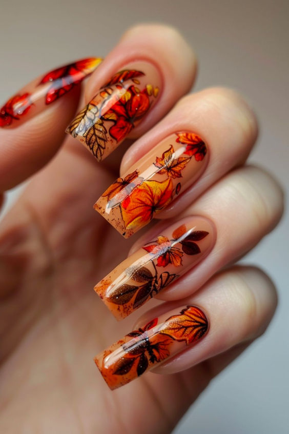 Stunning 20 Fall Nail Designs with Leaves: Creative Ideas for 2024 | Autumn Nail Art Inspiration