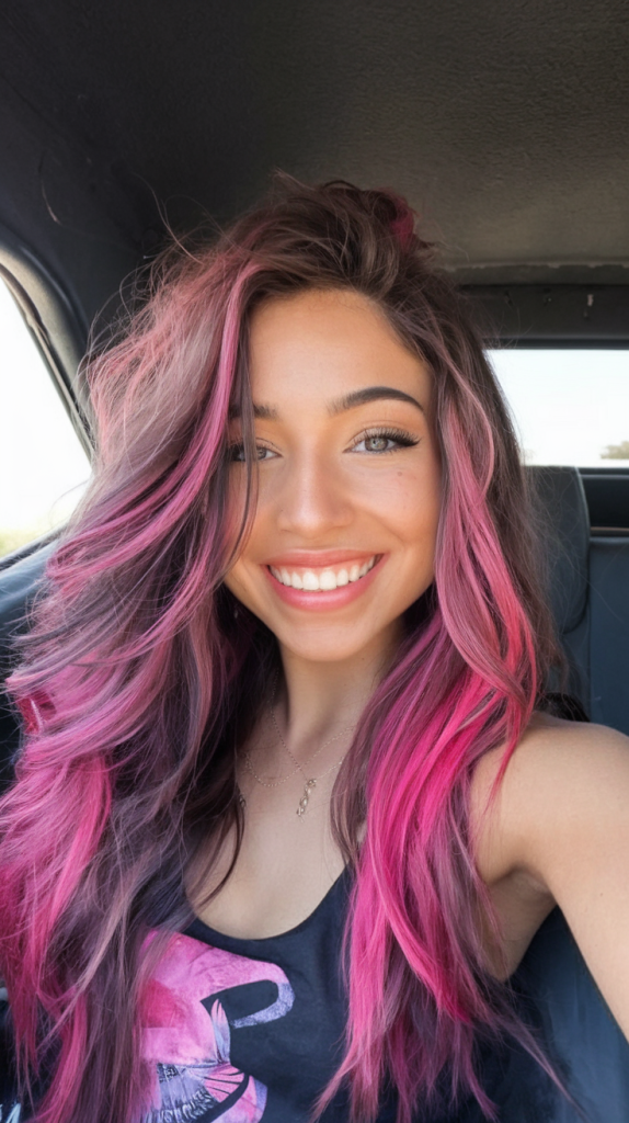 Bold and joyful, this style is for the women who treat their hair like a canvas. Electric pink and cool-toned violet are blended into rich Brunette roots, adding electric energy to a layered long cut. These fashion tones are part of the rising colour 2025 trend, where expressive hues meet sophisticated blends.