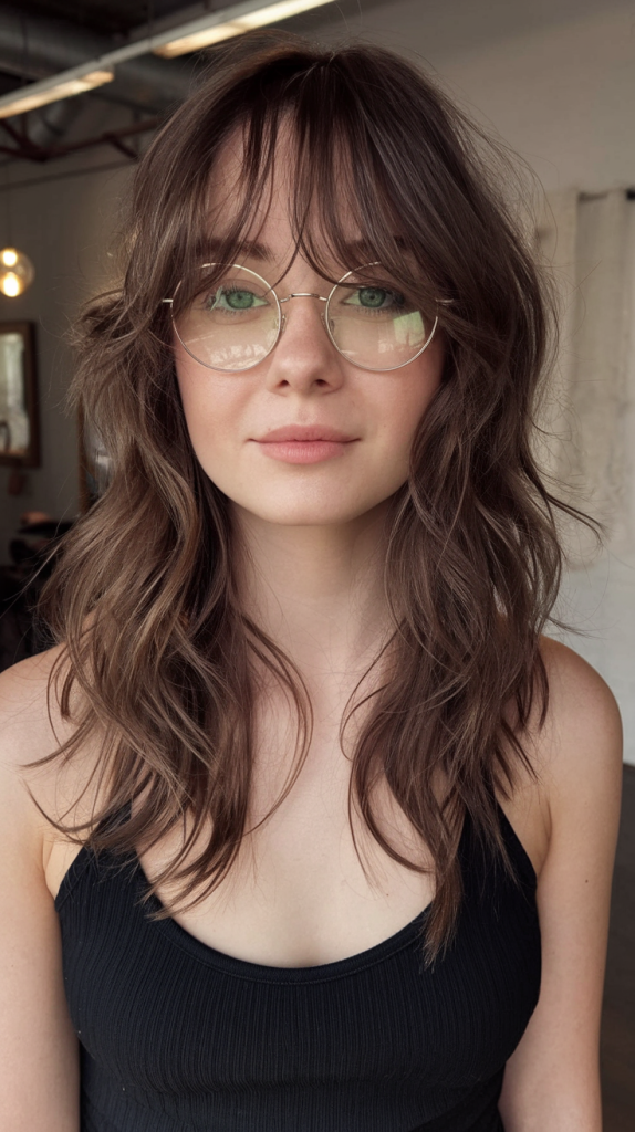 Texture is everything this 2025 spring, and this lived-in shag cut proves that less polish can mean more personality. The fringe is wispy and lightweight, paired with soft layers that encourage the hair to move freely and curl naturally. This style is ideal for women who love a nostalgic edge—think 70s energy, but completely modernized. The warm Brunette tone adds softness and dimension without overshadowing the texture.